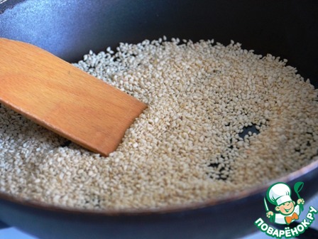 кунжут на сковороде до легкого золотистого цвета и приятного вкуса.